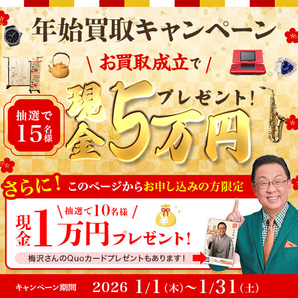 しかも、今なら、出張買取で買取成約すると、 抽選で15名様が現金5万円を貰えます!