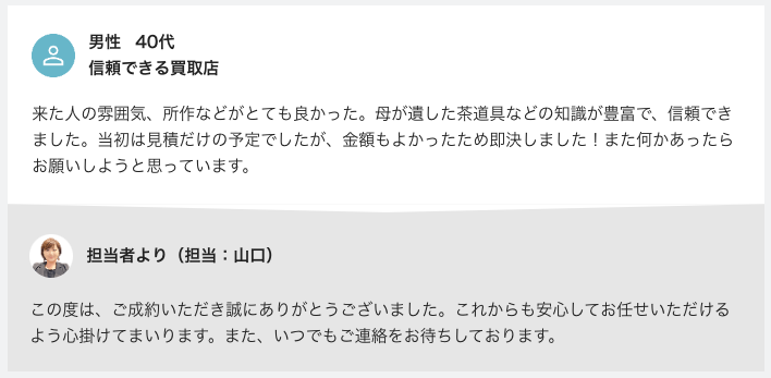 査定員の顔が見えたり、女性スタッフが在籍していると、さらに安心できるかと思います。