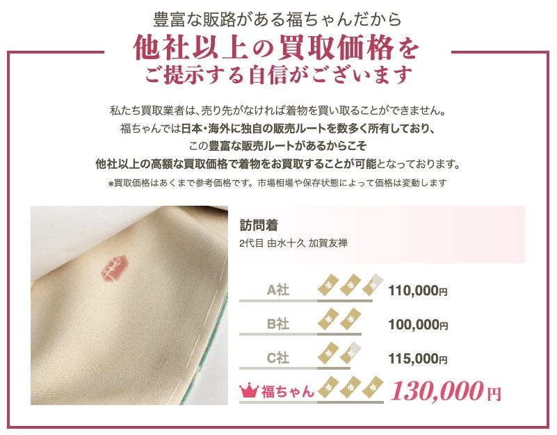 福ちゃんは、買取実績が800万点を突破している老舗の着物買取専門店。