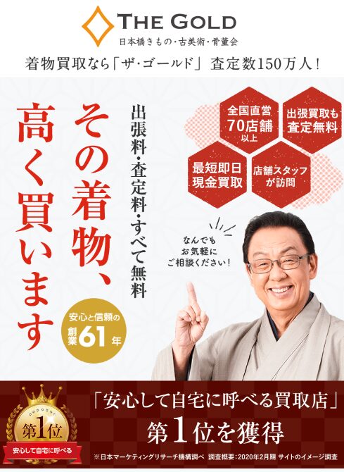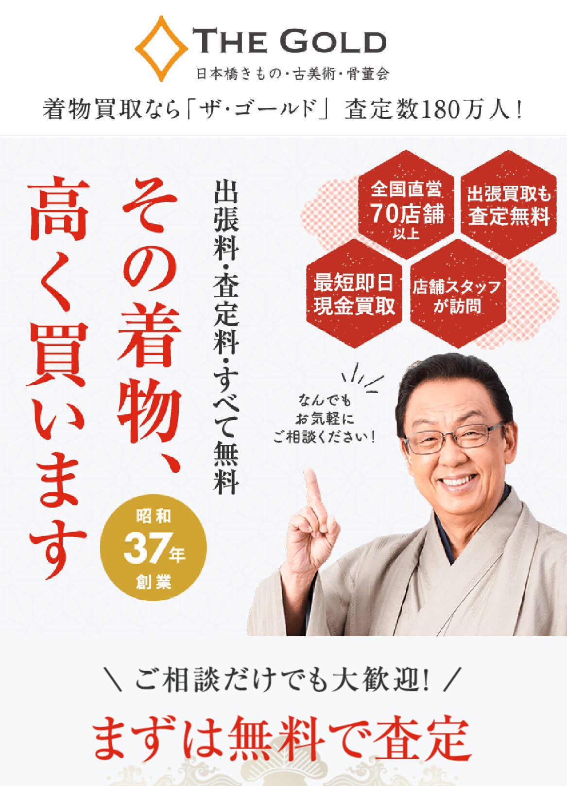 ザ・ゴールドは、昭和37年創業の歴史と査定数180万人を突破している老舗の着物買取専門店。