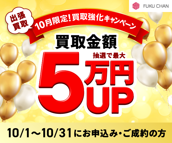しかも、今なら、出張買取の【買取価格 最大5万円UP(抽選)】のキャンペーンもついてきます!