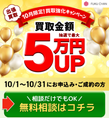しかも、今なら、出張買取の【買取価格 最大5万円UP(抽選)】のキャンペーンもついてきます!